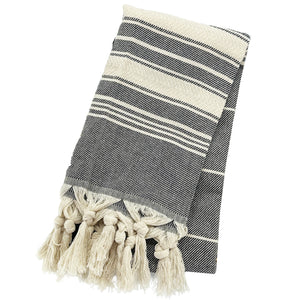 A timeless kitchen essential with elevated texture and style. This woven cotton tea towel features classic striping and soft fringe detailing, making it both functional and beautifully display-worthy.