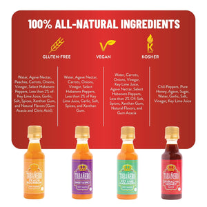 Turn up the flavor with the Tabañero Hot Sauce Variety Gift Set—a bold, crave-worthy sampler made for heat lovers and foodies alike. This four-pack of mini glass bottles delivers a perfect balance of heat, sweetness, and citrus, giving every meal a reason to celebrate.