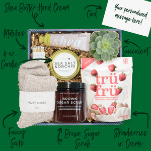 A fresh little burst of luck and relaxation. This St. Patrick’s Day gift box blends cozy comforts, sweet treats, and spa-inspired favorites—finished with a living succulent for a thoughtful touch that lasts beyond the holiday.